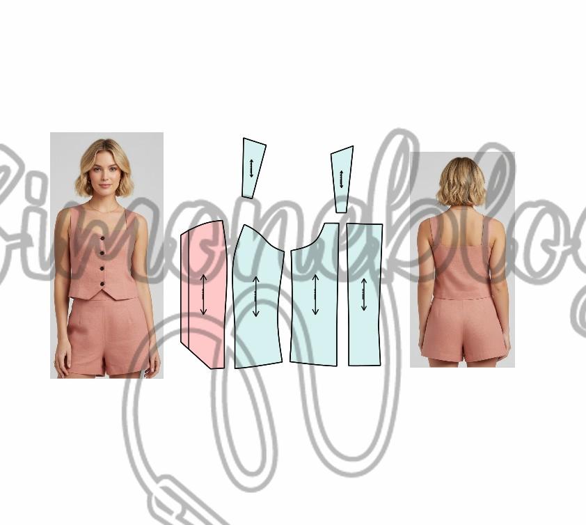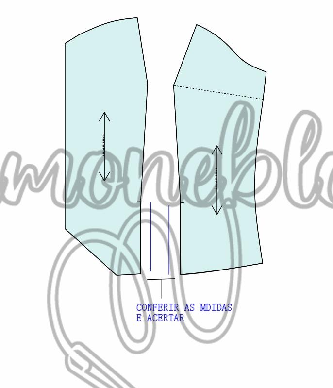 Moldes frente e costas, lembre-se de quando for cortar no tecido, corte 4x a parte costas como na frente 2x tecido e forro para lado direito e 2x tecido e forro para lado esquerdo.