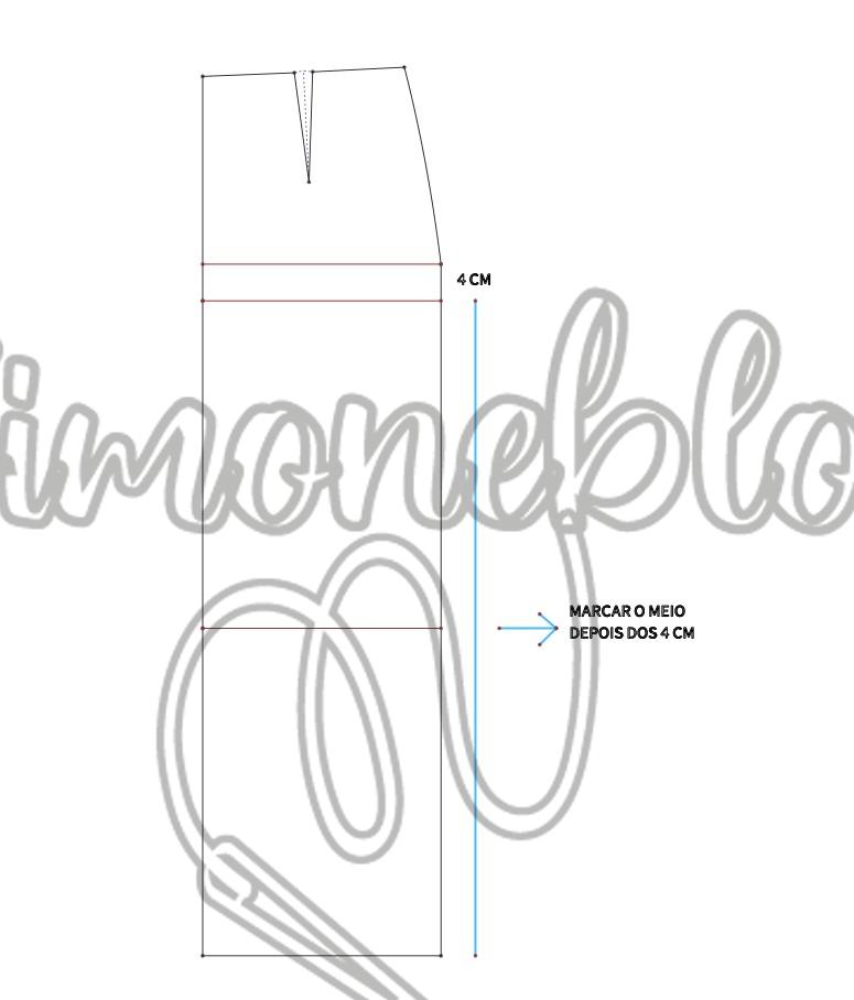 Para fazer o molde peguei a base de saia e desci 4 cm abaixo do quadril, essa medida ficou boa no meu quadril, meça no seu corpo a medida desejada, pode ser mais, menos ou só a altura do quadril se preferiri mas levar em conta se possui muito bumbum.