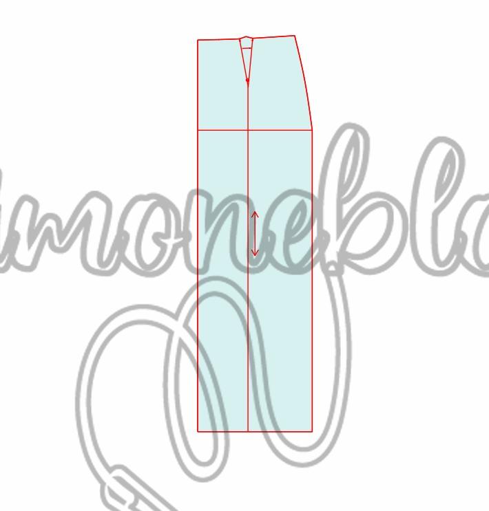 Para o molde costas é o mesmo processo sem a fenda. Traçar uma linha do fim da pence até a barra.