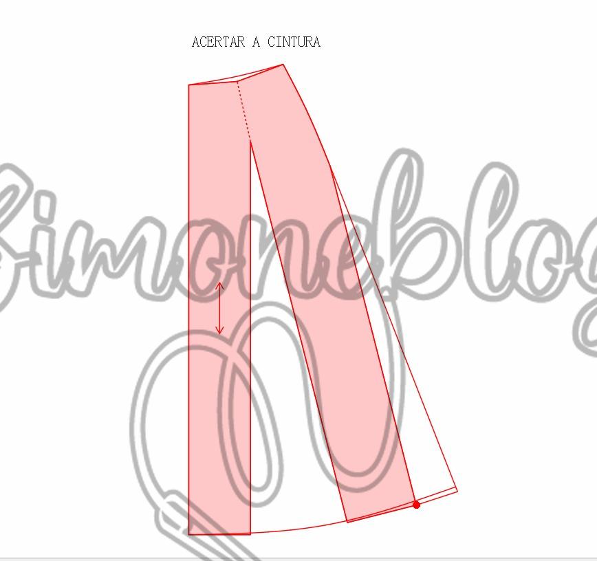 Peguei o mol de frente e o molde costas e marquei a medida de quanto ficou o cós com a parte cima removida. Na frente marquei a medida da parte sem o recorte, daí somei as medidas frente e costas