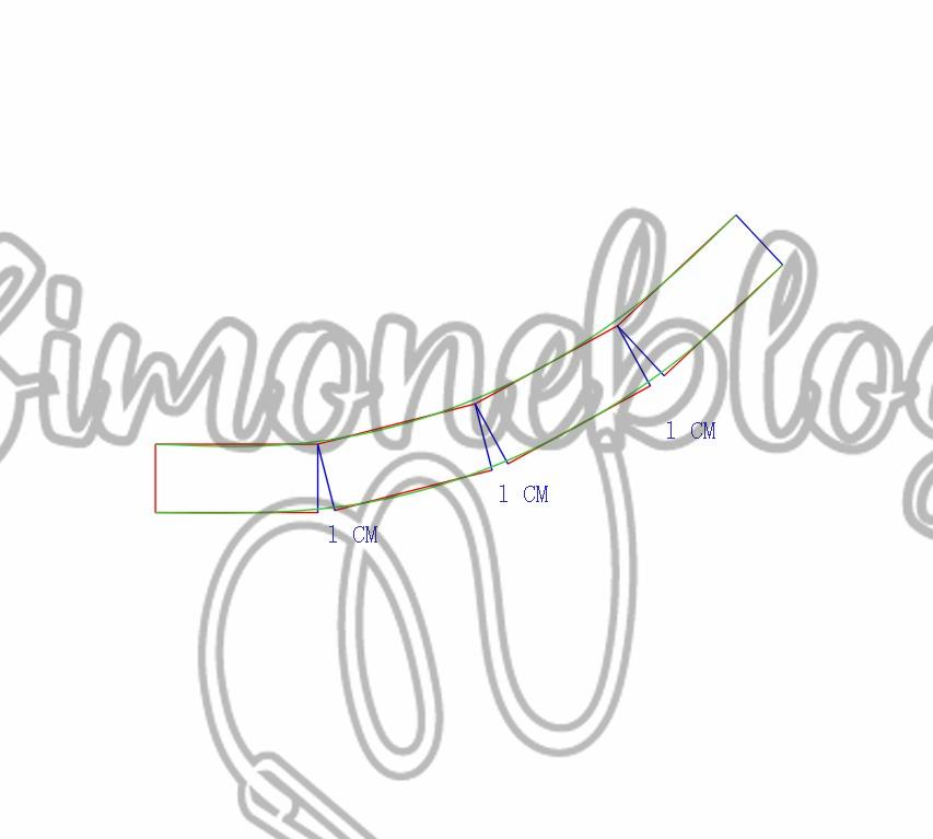 Depois diminui a metade da medida de cós que deu 41 menos a medida de metade da minha cintura 38 que deu 3 cm. Daí abri 1 cm em cada linha traçada que dividi formando um cós anatômico. E acertei na cor verde.