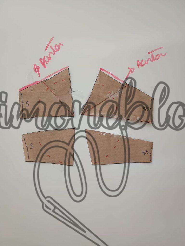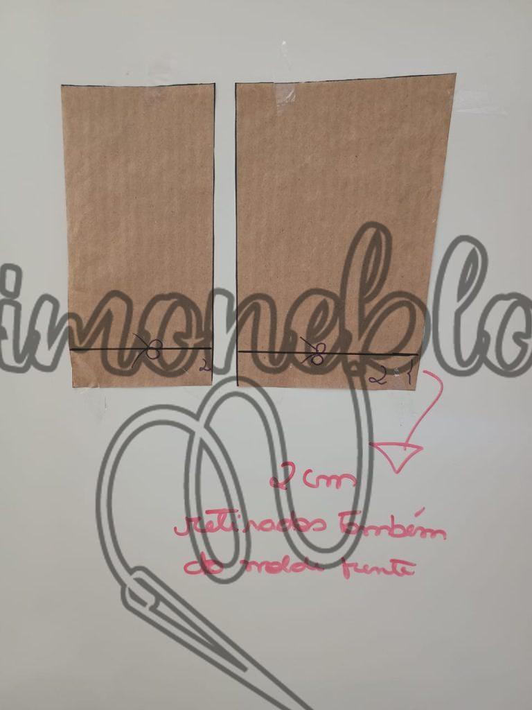 Recortei o molde e subi os 2 cm que também subi na frente.