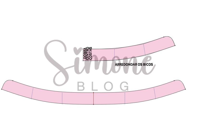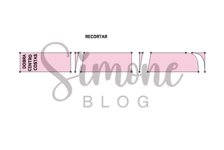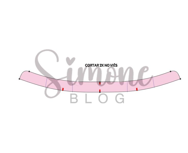 Coloquei as informações do molde para corte no tecido e desenhei a vista que será colocada de um lado só, a largura foi de 3 cm pela altura que ficou do centro frente.