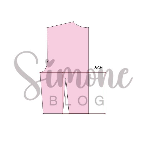 Onde dei ajuste de 1,5 cm tracei em linha reta até o centro frente e até a lateral.