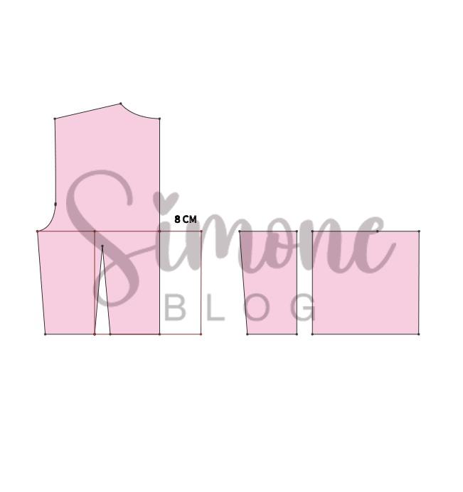 No molde costas é bem simples e rápido, tracei em reta ao centro costas, aumentei 8 cm para o lastex, liguei da pence de cintura em reta e desenhei um retângulo para o lastex.
