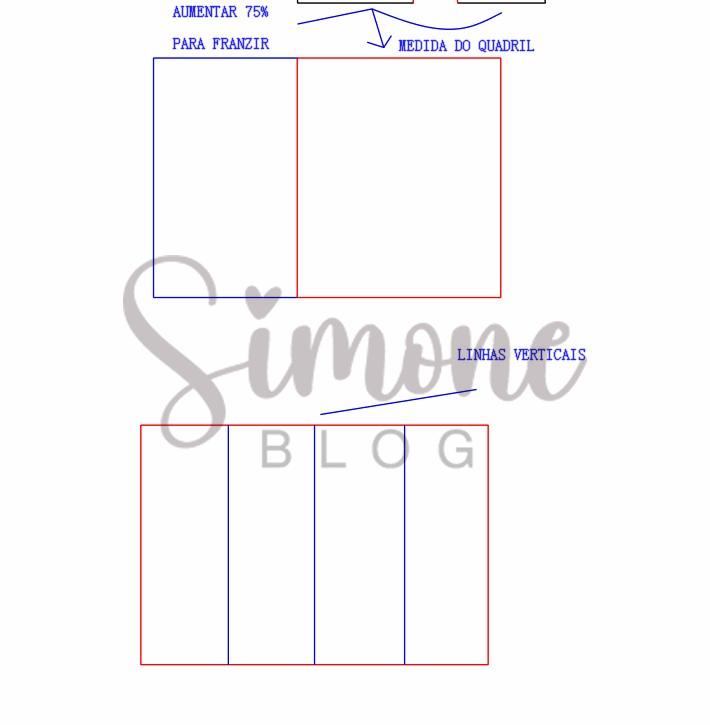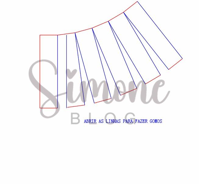 Medi a largura do quadril nesse caso em 1/4 do molde e aumentei 75% dessa medida para franzir. Depois eu tracei verticais.