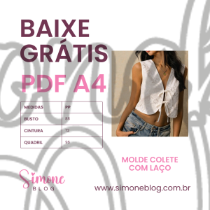 Olá pessoal, tudo bem? A dica de hoje é um molde de um colete que achei super lindo e vim compartilhar com vocês. O tamanho PP está disponível para Download, as medidas do meu PP agora vestem do busto 86 até ao 90, estourando no máximo busto 92. Para fazer o molde eu desci no […]